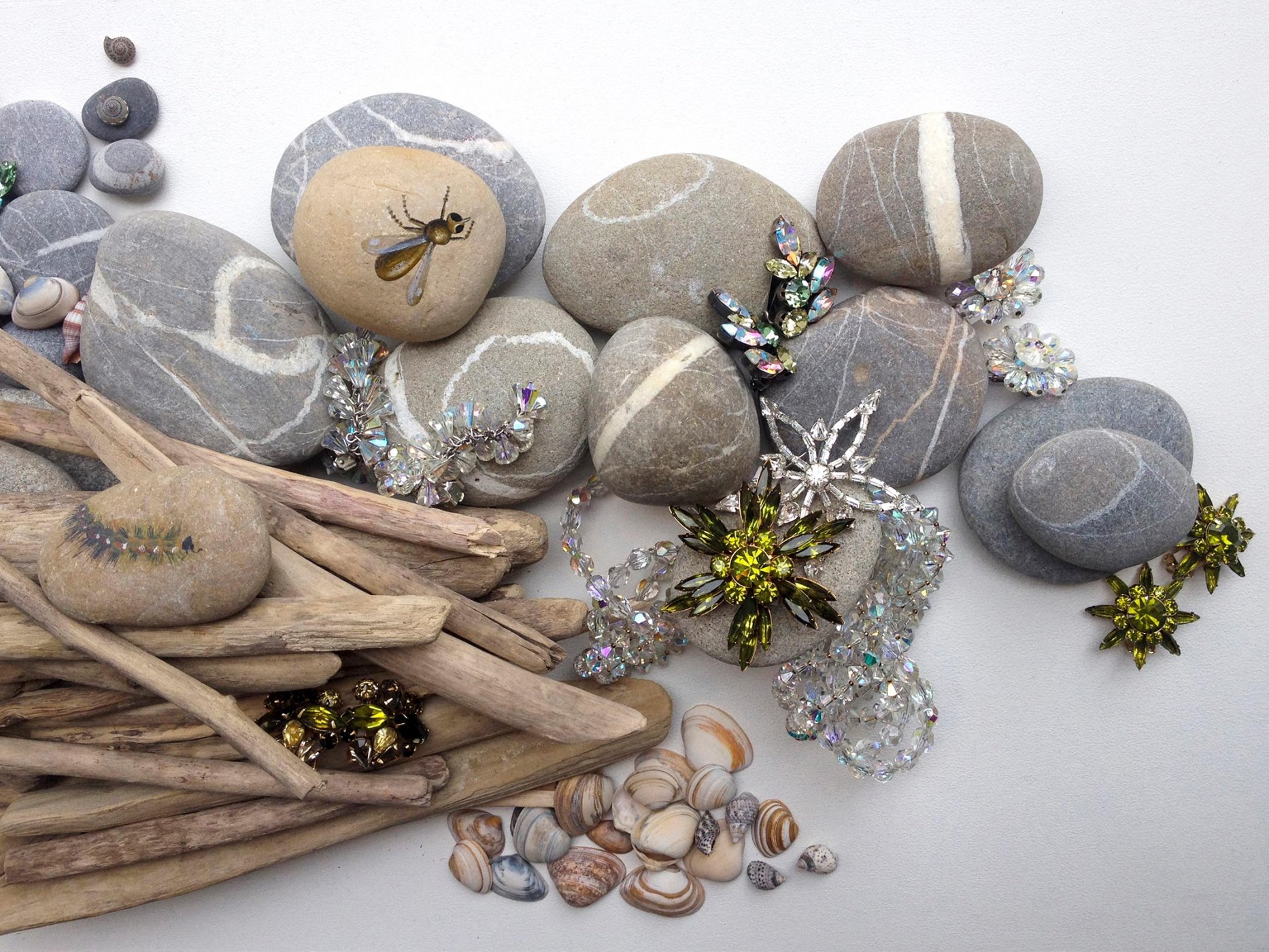 Es grenzt an ein Wunder, dass diese Schmuckstücke überlebt haben, fünfzig, hundert, hundertfünfzig Jahre: Ohrringe, Ketten, Broschen und Armbänder, Kleiderclips, Manschettenknöpfe, von Hand gemacht – und von Hand zu Hand weitergegeben. Geschnitztes findet sich neben Geschliffenem und Gegossenem, versteinertes Holz neben Silber, Glas, Strass, Bakelit, Bernstein, Korallen, Perlmutt. Vieles grenzt hier auf diesen wenigen Quadratmetern an ein Wunder. Wer den Laden betritt, den Blick über die Exponate schweifen lässt und eines in die eigene Hand nimmt, beginnt eine Reise, durch Sehnsüchte, Fantasien, Bilder, gelebte und mögliche Leben.